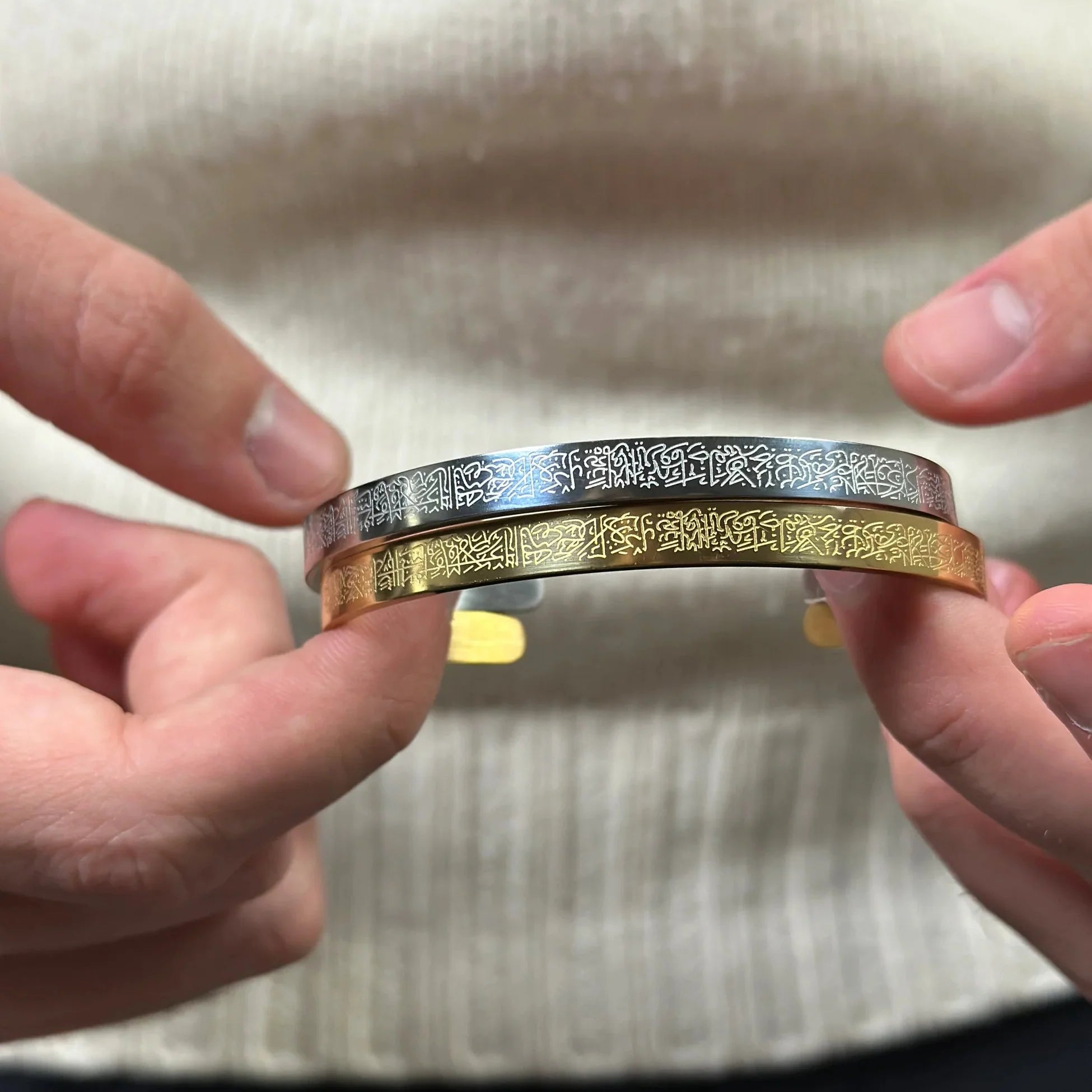 وفقًا لتعاليم ديننا، نوصي بإزالة أي مجوهرات أو قطع تحمل آيات من القرآن قبل دخول الحمّام أو القيام بأعمال لا تكون فيها طهارة كاملة.